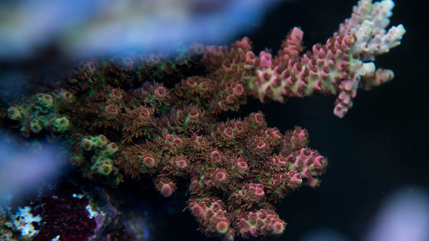 Colony is grown under medium high light and flow.